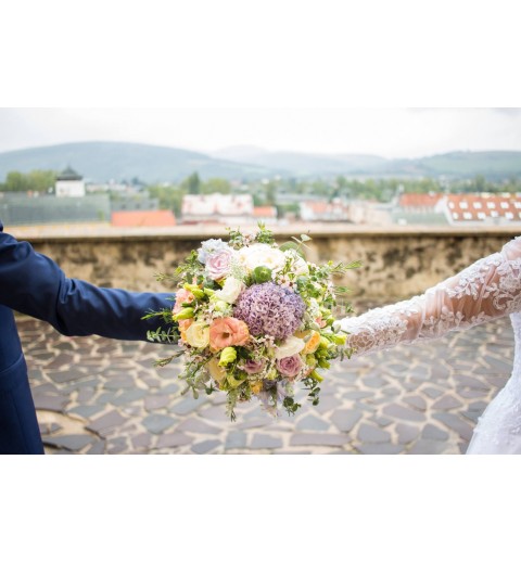 Svadobná kytička v kombinácií pastelových kvetov. Farbu, druh a počet kvetov si môžte vybrať. Informujte sa o dostupnosti kvetov na 0948 772273. Radi Vám pripravíme aj kytičky pre družičky a svadobné mamy.